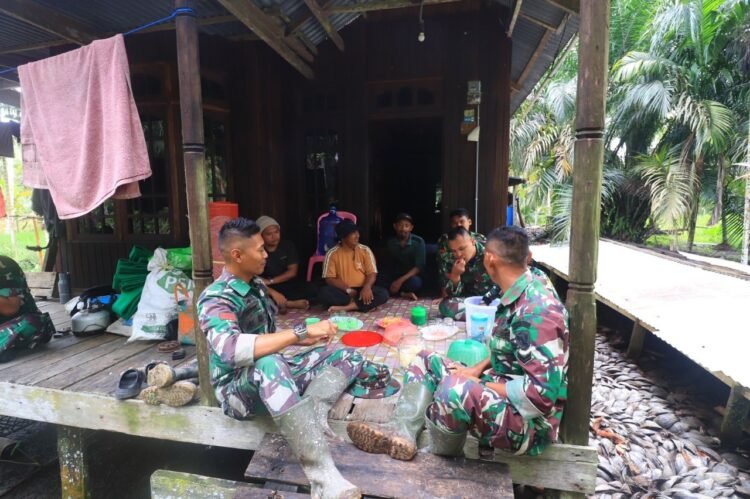 Suasana santai tersebut diwarnai dengan perbincangan ringan dan canda tawa. Baik anggota TNI maupun warga tampak akrab, tanpa ada sekat atau rasa canggung. Momen ini menunjukkan bahwa kehadiran TNI di tengah masyarakat bukan hanya untuk membangun fisik desa, tetapi juga menjalin hubungan emosional dan kebersamaan.