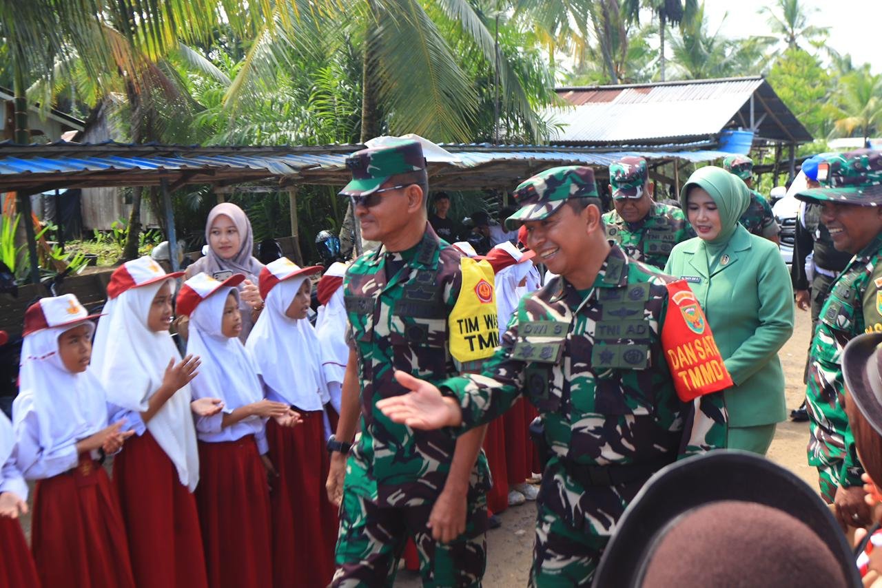 Komandan Kodim 0419/Tanjab, Letkol Arm Dwi Sutaryo, S.E., M.Han, bersama Forkopimda Kabupaten Tanjung Jabung Barat menyambut kedatangan Tim Pengawasan dan Evaluasi (Wasev) dari Mabesad dalam rangka kegiatan TNI Manunggal Membangun Desa (TMMD) ke-124. Senin (19/5/25).