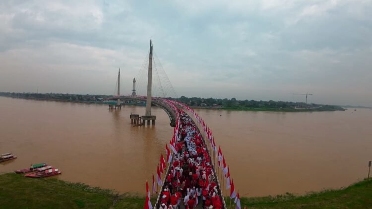 RJ.COM – Pemerintah Provinsi (Pemprov) Jambi mencatat sejarah baru dengan meraih penghargaan Museum Rekor Dunia Indonesia (MURI) atas pengibaran ribuan Bendera Merah Putih di Jembatan Gentala Arasy, Kota Jambi, Sabtu (16/8/2025).