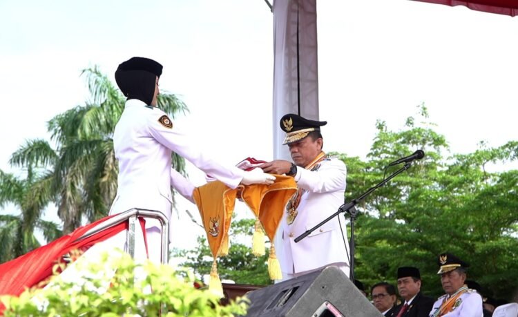 RJ.COM – Gubernur Jambi, Al Haris, bertindak sebagai Inspektur Upacara pada peringatan Hari Ulang Tahun (HUT) ke-80 Kemerdekaan Republik Indonesia di Lapangan Kantor Gubernur Jambi, Minggu (17/8/2025).