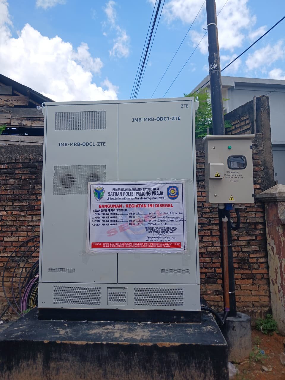 RJ.COM – Menindaklanjuti keresahan masyarakat Kabupaten Batang Hari terhadap adanya pemasangan/penanaman tiang utilitas Fiber Optik (FO) internet milik MyRepublic, Satpol PP Batang Hari pun bergerak dengan menindak/menyegel gardu induk jaringan MyRepublic yang ada di Kecamatan Muara Bulian.