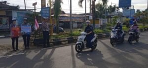 Satlantas Polres Tanjung Jabung Timur melaksanakan kegiatan sosialisasi Operasi Zebra kepada para pengendara yang melintas di area traffic light Simpang sate (18/11/2025).