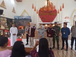 Selain itu, Bupati dan Wakil Bupati bersama unsur Forkopimda juga meninjau langsung pelaksanaan Perayaan Natal di Gereja Katolik Stasi Santo Thomas, Lagan, Desa Pandan Makmur, Kecamatan Geragai.