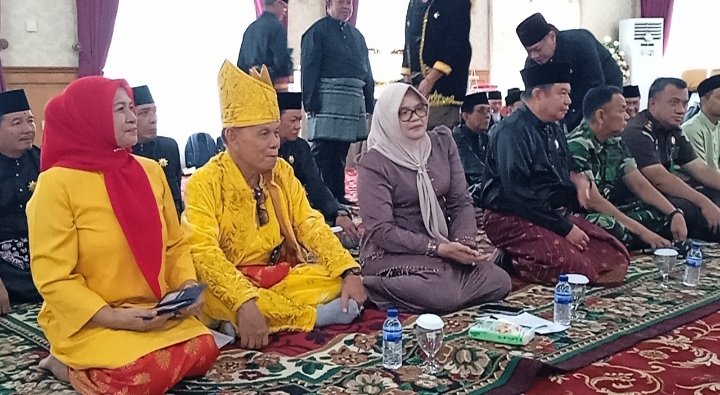 Pelantikan di hadiri Bupati Tanjab Timur Hj Dillah Hikmah Sari. Ketua Lembaga Adat Melayu (LAM) Tanjab Timur Ahmad Suwandi.SH. MH, Forkopimda kabupaten Tanjab Timur.