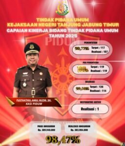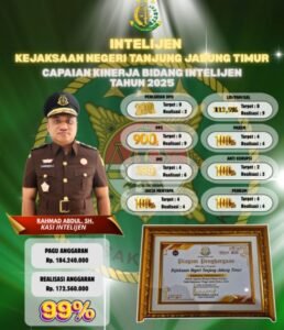 Prestasi tersebut mencerminkan konsistensi dan kerja kolektif seluruh jajaran Kejari Tanjab Timur dalam meningkatkan kualitas penegakan hukum dan pelayanan publik sepanjang tahun 2025.
