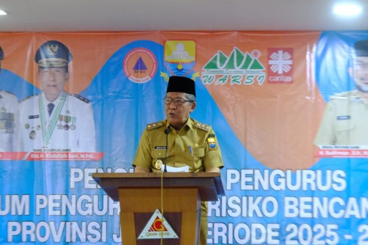 RJ.COM — Wakil Gubernur Jambi Drs. H. Abdullah Sani, M.Pd.I secara resmi mengukuhkan pengurus Forum Pengurangan Risiko Bencana (FPRB) Provinsi Jambi periode 2025-2028, bertempat di Ruang Bulian, Grand Hotel Jambi, Selasa (10/2/2026).