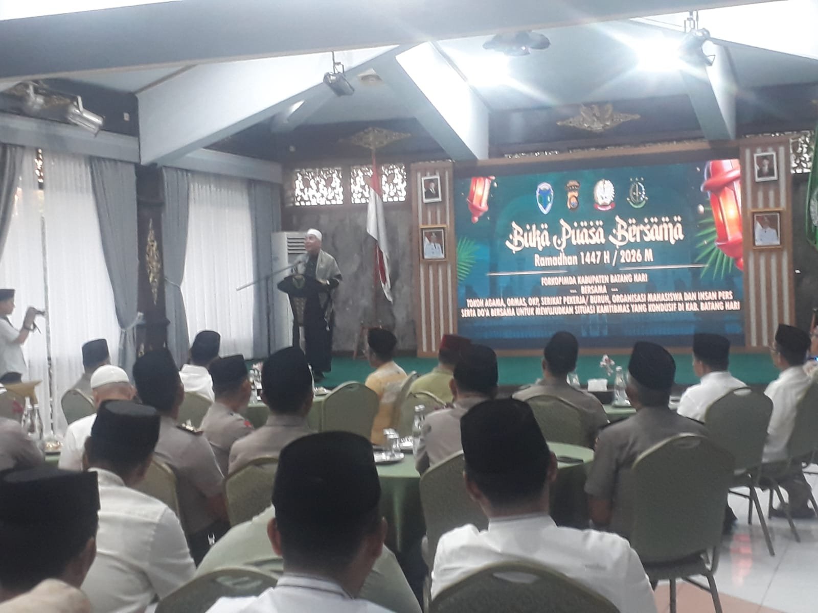Bertempat di Rumah Dinas Bupati Batang Hari, Senin (2/3/2026) sekitar pukul 17.30 WIB, digelar buka bersama yang dihadiri berbagai unsur pemerintah, tokoh agama, organisasi kemasyarakatan hingga insan pers.