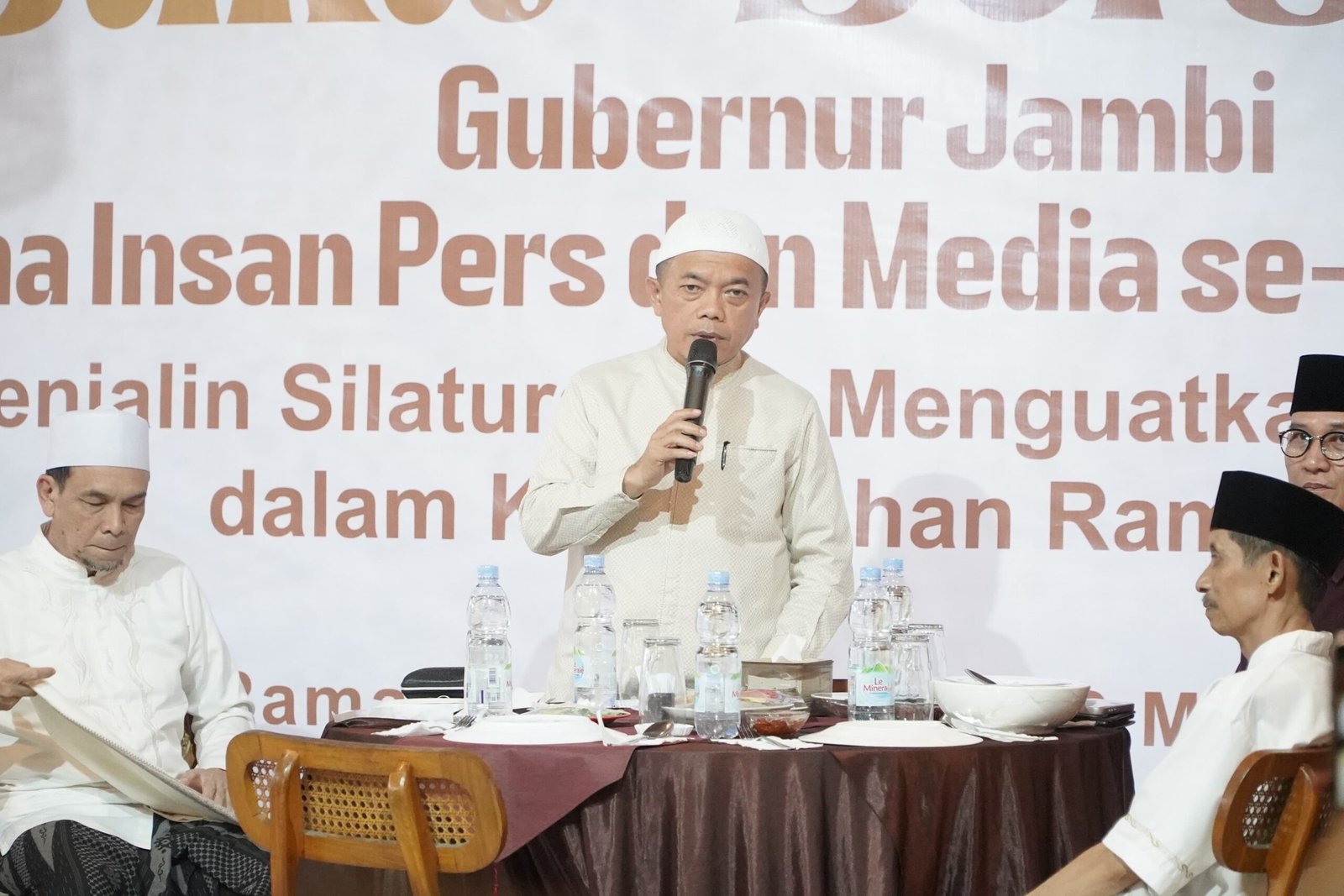 “Atas nama rekan-rekan media kami mengucapkan terima kasih kepada bapak Gubernur Al Haris dan Kepala Dinas Kominfo Provinsi Jambi atas undangan silaturrahmi dan buka puasa bersama, semoga silaturahmi ini terus berlanjut,” ujar Ma’as.