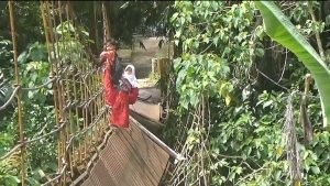 RJ.com – Sebuah tali penyangga jembatan gantung sepanjang 100 meter