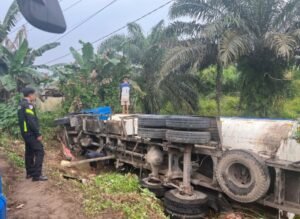 Tanjabtimur- Truk tangki berwarna biru putih dengan nomor polisi L